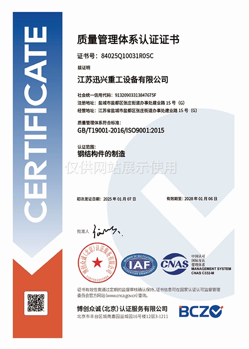 质量管理体系认证证书