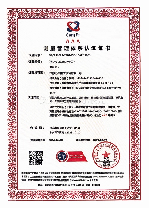 • 测量管理体系认证证书